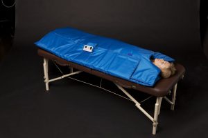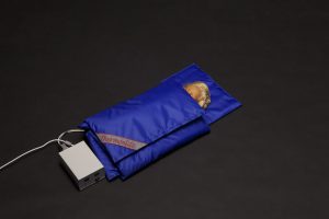 Термоодеяло предназначено для обогрева пациента в автомобилях СМП при низких температурах внутри автомобиля и состоянии гипотермии пациента. Точность установки температуры составляет 1 градус. Корпус блока управления защищен от ударов металлической пластиной. Питание термоодеяла осуществляется от бортовой сети автомобиля через разъема прикуривателя. Конструкция термоодеяла позволяет осуществлять сосудистый доступ к любой из рук пациента без отключения нагрева. Мощность 60 Вт.