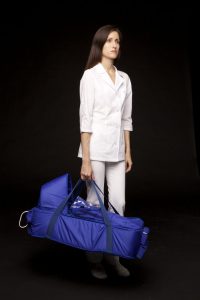 Сумка переноска с детским конвертом предназначена для обогрева новорожденных при транспортировке в условиях пониженных температур. Питание осуществляется от переносных 12 В АКБ, предусмотрено автономное питание в течение 40 мин. в зависимости от температуры окружающего воздуха. Зарядка АКБ осуществляется от сети 220 В.