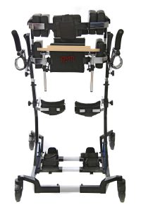 Опорная система для пассивно-активной реабилитации и передвижения (самостоятельного хождения), которая делает возможным принятие положения сидя и стоя без дополнительной помощи других вспомогательных средств (костылей, тростей и т.д.) больных с травмами спинного мозга (в том числе шейного отдела), ДЦП и с различными неврологическими нарушениями вызывающими полный или частичный паралич верхних и нижних конечностей.