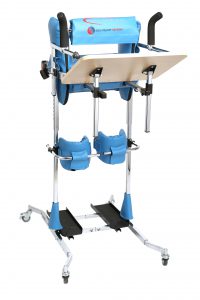 Статический вертикализатор ЛИФТЕР это современное реабилитационное устройство. Установленный в нем электропривод интегрированный с сидением позволяет пациенту при помощи пульта самостоятельно вставать в устройстве. Сидение дополнительно фиксирует пациента в устройстве. Возможность самостоятельно принимать вертикальное положение тела увеличивает независимость пациента, что очень позитивно сказывается на его психическом состоянии. Дополнительно для пациентов с парезами верхних конечностей возможна комплектация стабилизатором верхней части тела. Вертикализатор имеет четыре поворотных ролика, благодаря им можно перемещать пациента по помещению больницы или дома прямо в устройстве в положении стоя.